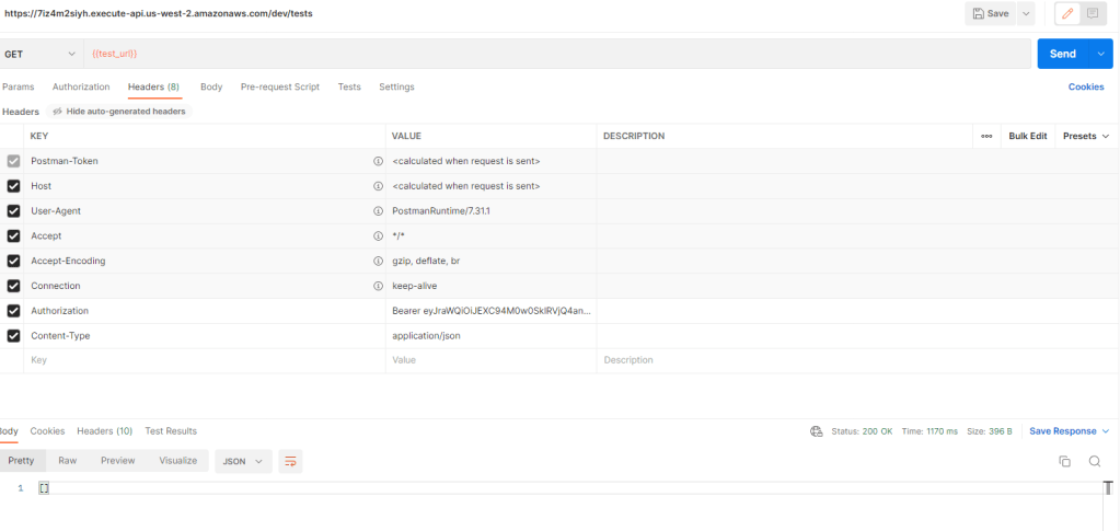 To validate that the authorization is working, we can make 2 separate requests, one without the Authorization header and one with the Authorization header including our issued token.