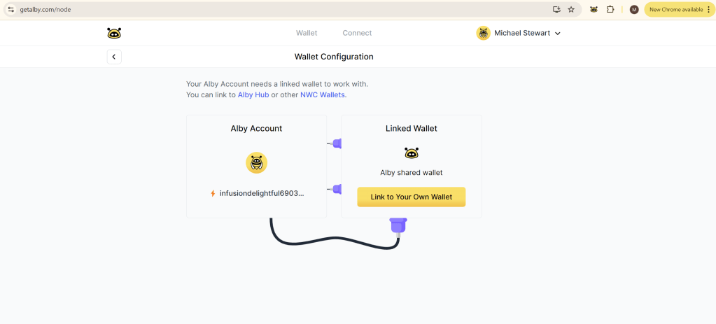 After signing into Alby, go to “Wallet Configuration” and then “Link to Your Own Wallet”: