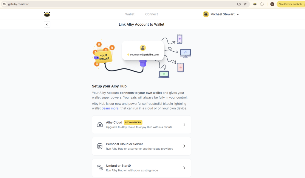 Recently, the fantastic folks at Alby released the Alby Hub product, a self-sovereign Alby wallet with an integrated lightning node. Alby Hub offers the simplest and fastest way to set up and start using the Bitcoin Lightning Network. If you currently have an Alby wallet, you can upgrade to start using Alby Hub right now, however if you do not there is a short waitlist for obtaining the wallet. You can get onto the waitlist here. Along with Alby Hub, Alby Cloud offers cloud infrastructure to set up your node and start using Lightning Network.